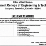 Government College of Engineering Technology GCET Ganderbal faculty job opportunities 2025